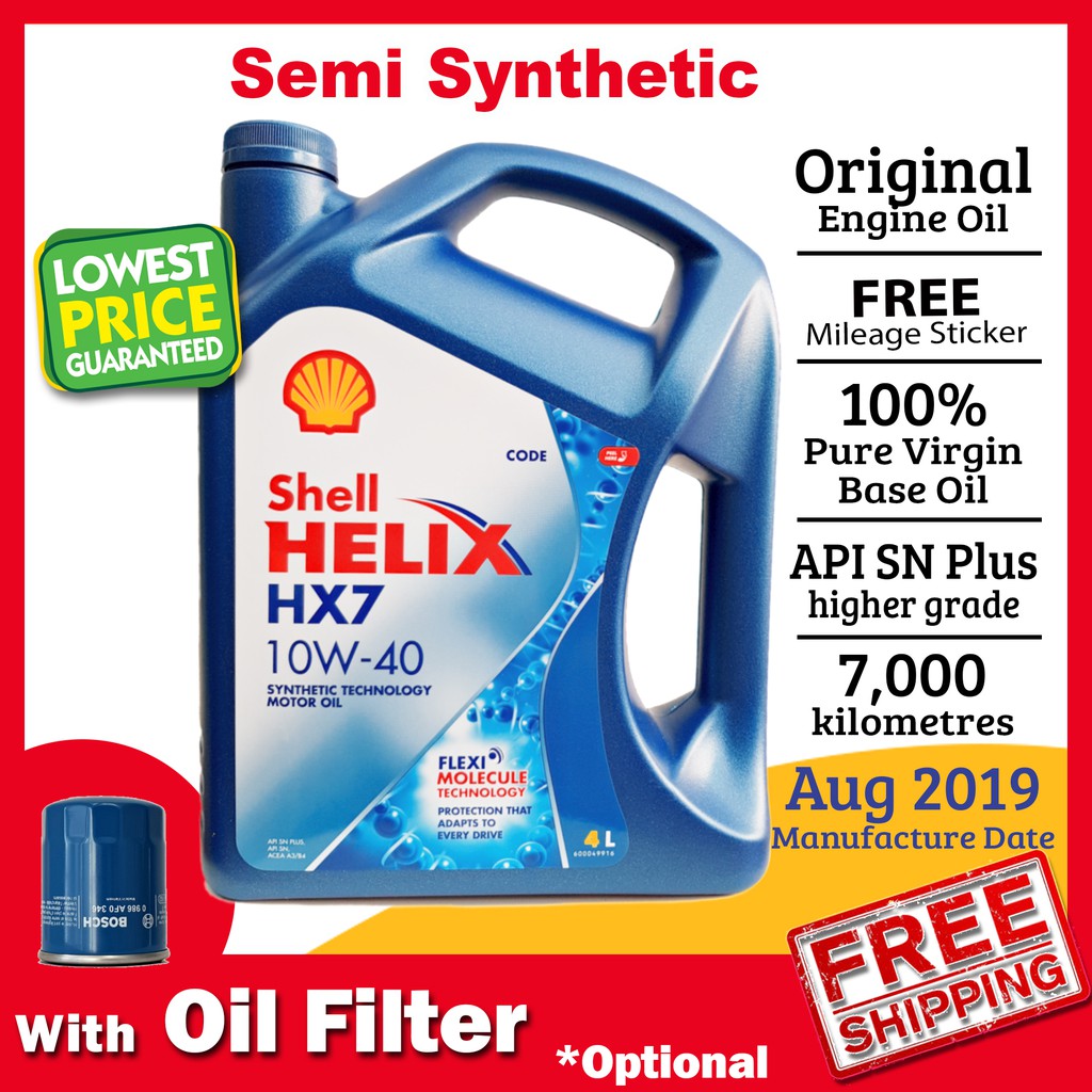 Original Shell Helix Hx7 10w 40 10w40 Semi Synthetic Engine Oil 4l Made In Hk Italy With Oil Filter Shopee Malaysia