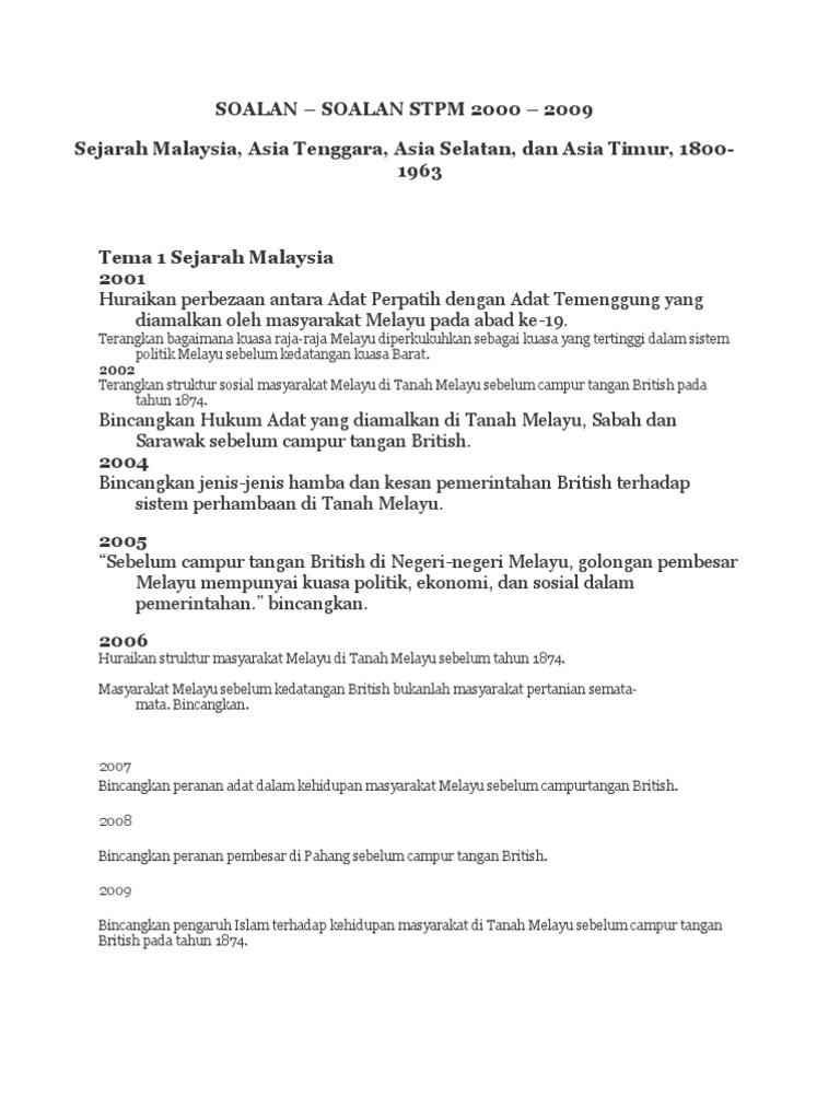 Soalan Sebenar Stpm Sejarah 2005 2009