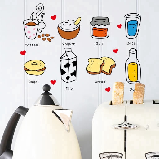Wall Sticker Gambar Kartun Makanan Dan Minuman Lucu