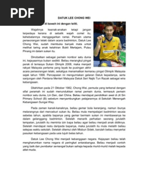 Sejarah Dan Pencapaian Datuk Lee Chong Wei Dalam Sukan Badminton Iluminasi