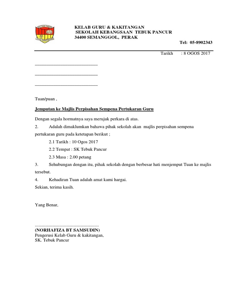 Surat Jemputan Majlis Perpisahan