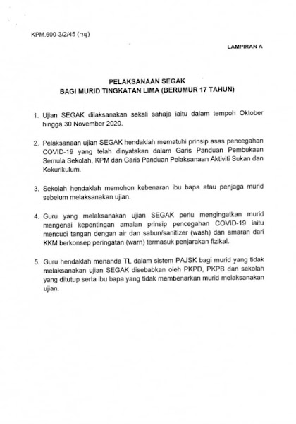Ujian Segak Murid Tahun 4 Hingga Tingkatan 4 Dibatalkan Kpm Cikgu Share