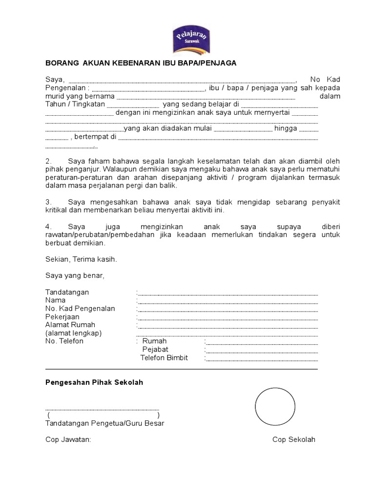 Contoh Surat Kebenaran Ibu Bapa