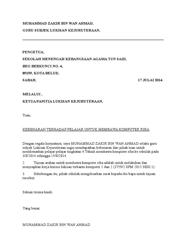 Contoh Surat Kebenaran Membawa Kenderaan Ke Sabah Backup Gambar
