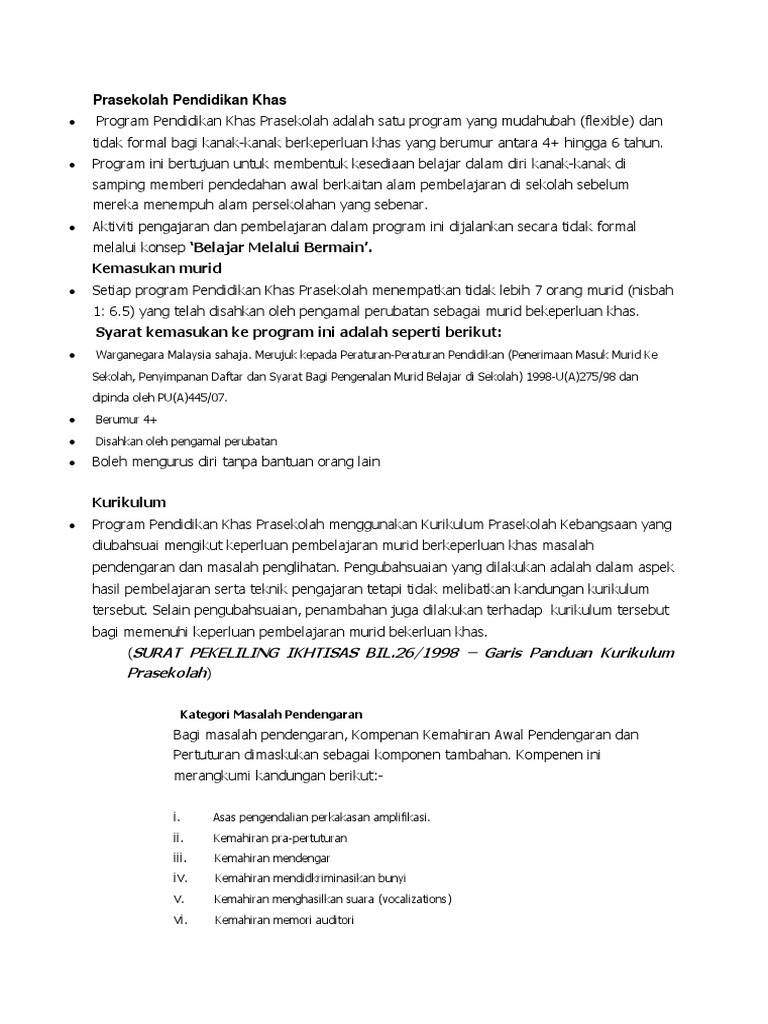 Syarat Kemasukan Pra Sekolah Pendidikan Khas