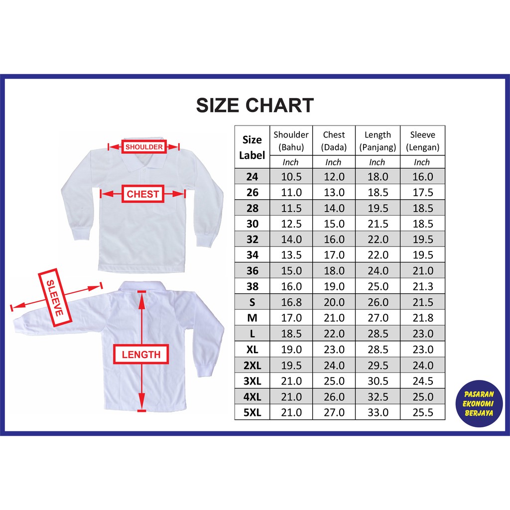 Baju Tshirt Pra Sekolah Berkolar Lengan Panjang Warna Putih Size 26 Lazada