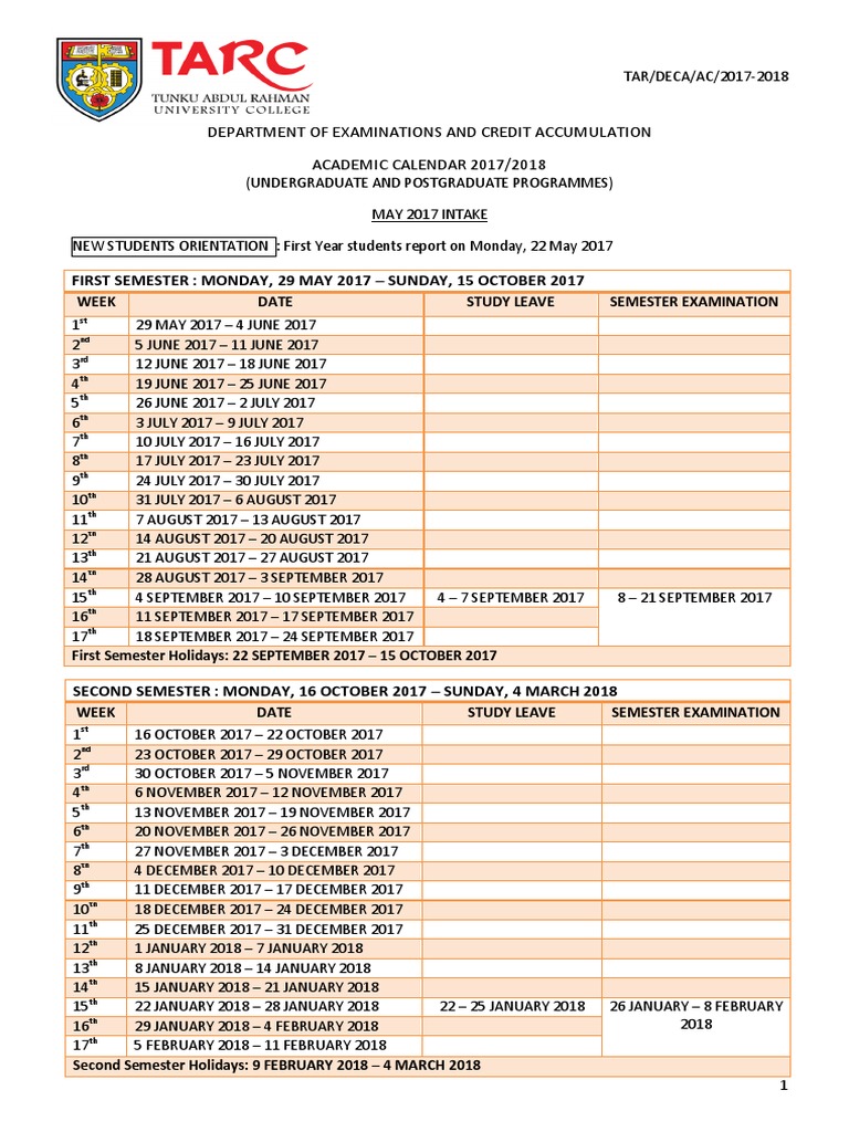 Academic Calendar 2017 2018 Undergraduate Postgraduate Programmes May 2017 Intake 2 Academic Term Postgraduate Education