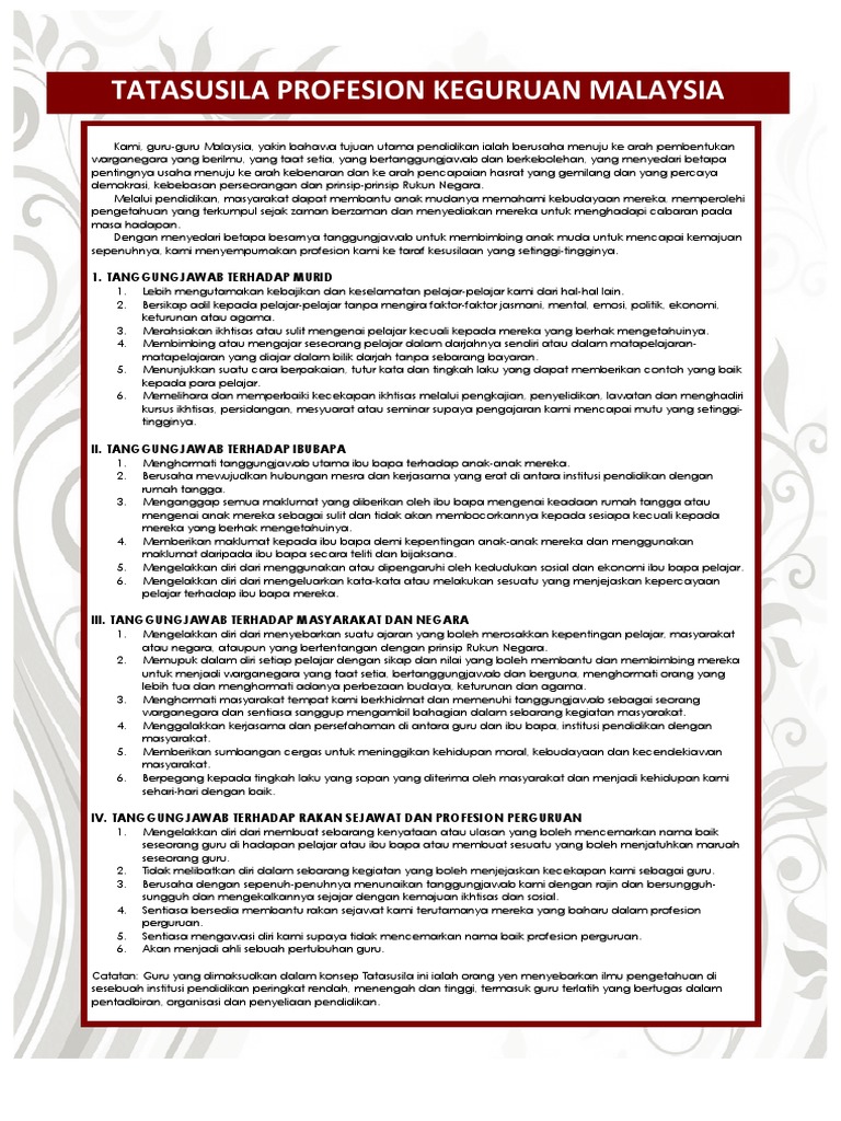 Tatasusila Profesion Perguruan Malaysia Pdf