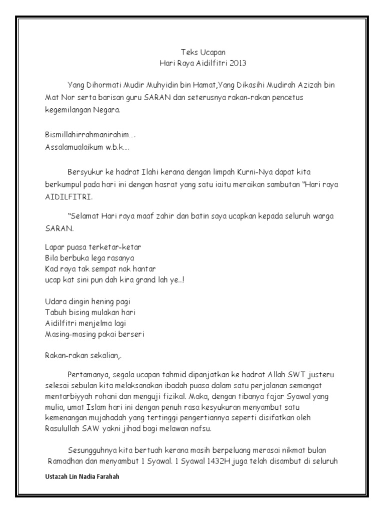 Teks Mc Sempena Majlis Hari Raya Aidilfitri 2013 In 2020 Teks Mathematics