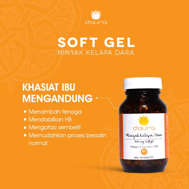 Info testimoni minyak kelapa dara d aura. D aura minyak kelapa dara softgel 80capsule rm 54 00 rm 49 00 khasiat minyak kelapa dara adalah dari minyaknya yang kaya dengan lemak tepu yang memberi 1001 rawatan pencegahan penyakit telah mendapat kepercayaan oleh masyarakat dunia tentang keberkesannya yang amat menakjubkan. D aura softgel minyak kelapa dara as syifa ini tidak mengandungi ldl kolestrol.