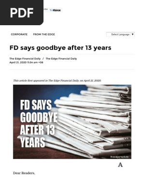 Fd Says Goodbye After 13 Years Dear Readers Financial Services Banking