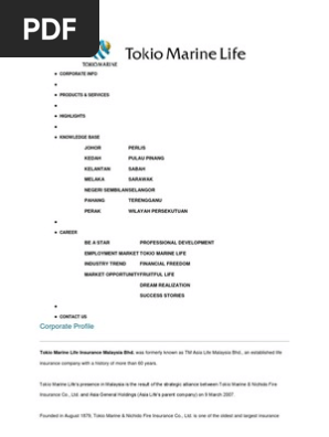 Corporate Info Tokio Marine Tokyo Insurance