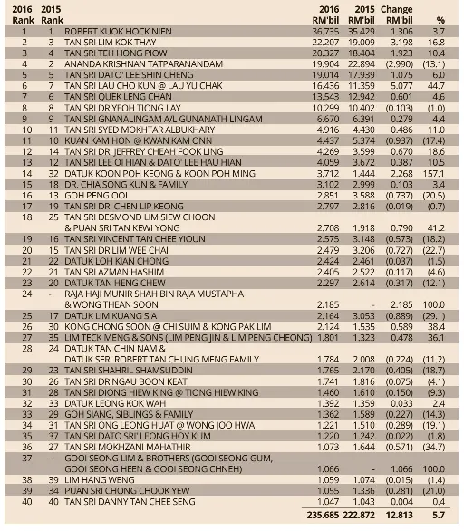 Pressreader The Star Malaysia Starbiz 2017 02 04 Top 40 Richest People In Malaysia