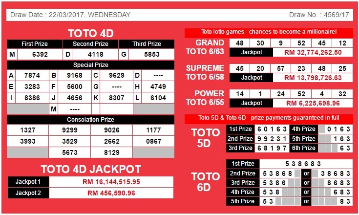 4d Result Malaysia 4d Results For Malaysia And Singapore 22nd March 2017