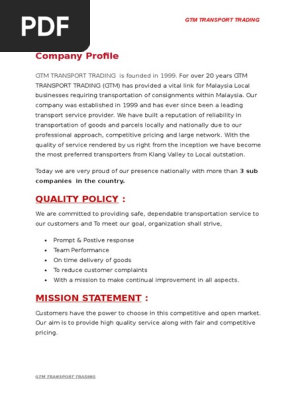 Company Profile Wai Trading Transport Services Sdn Bhd