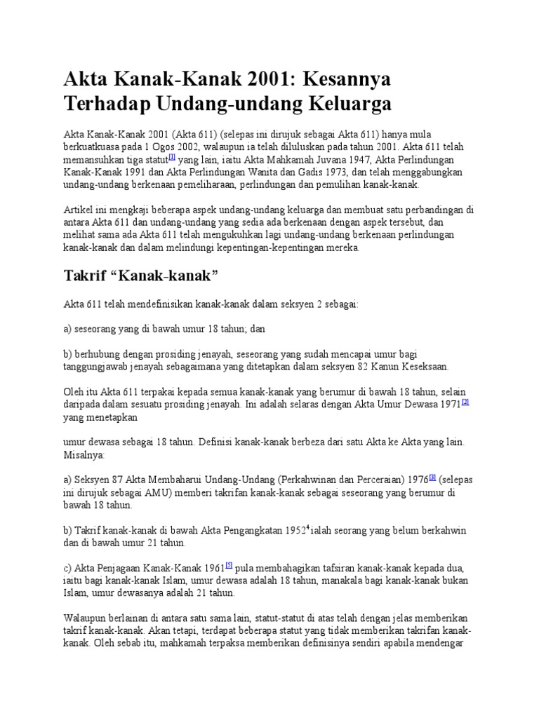 Akta Kanak Kanak 2001 Ismp Pendidikan Awal Kanak Kanak Studocu