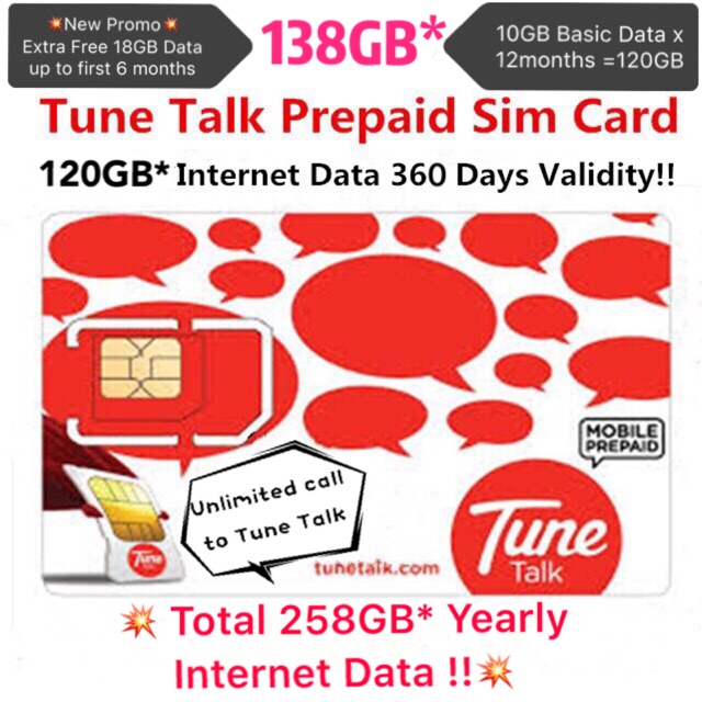 Tune Talk Prepaid Sim Card 258gb Data 360 Days Validity Shopee Malaysia