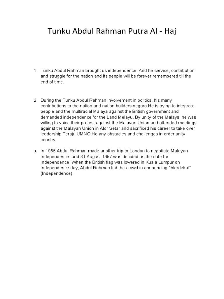 Father Of Independence Tunku Abdul Rahman Father Contribution