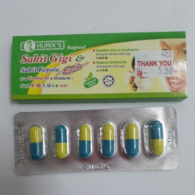 Hurix S Sakit Gigi Dan Sakit Kepala Capsule 6s Shopee Malaysia