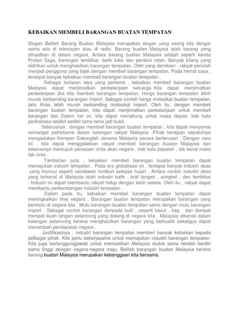 Contoh Esei Tugasan 2 Belilah Barangan Buatan Malaysia