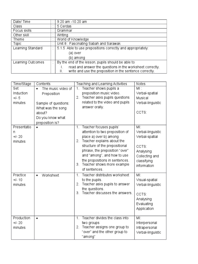 Fascinating Sabah Sarawak Grammar Lesson Plan Human Communication