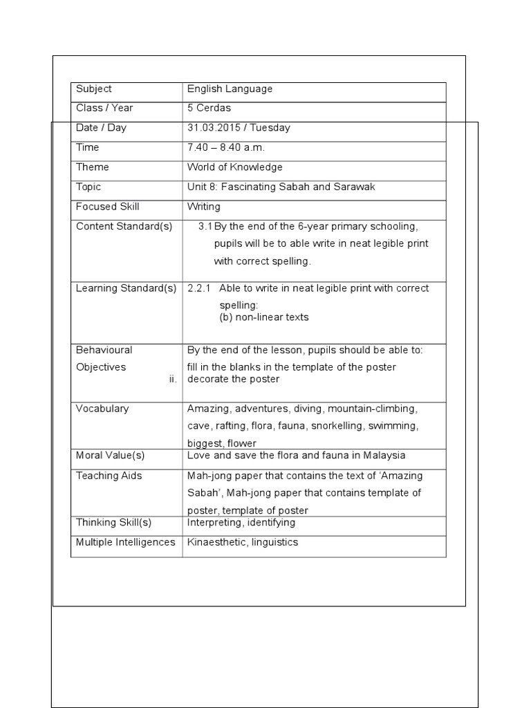5c Fascinating Sabah And Sarawak Writing Lesson Plan Epistemology