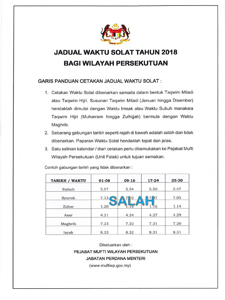 Waktu Solat Bagi Wilayah Persekutuan Jabatan Kemajuan Islam Malaysia Jakim Facebook